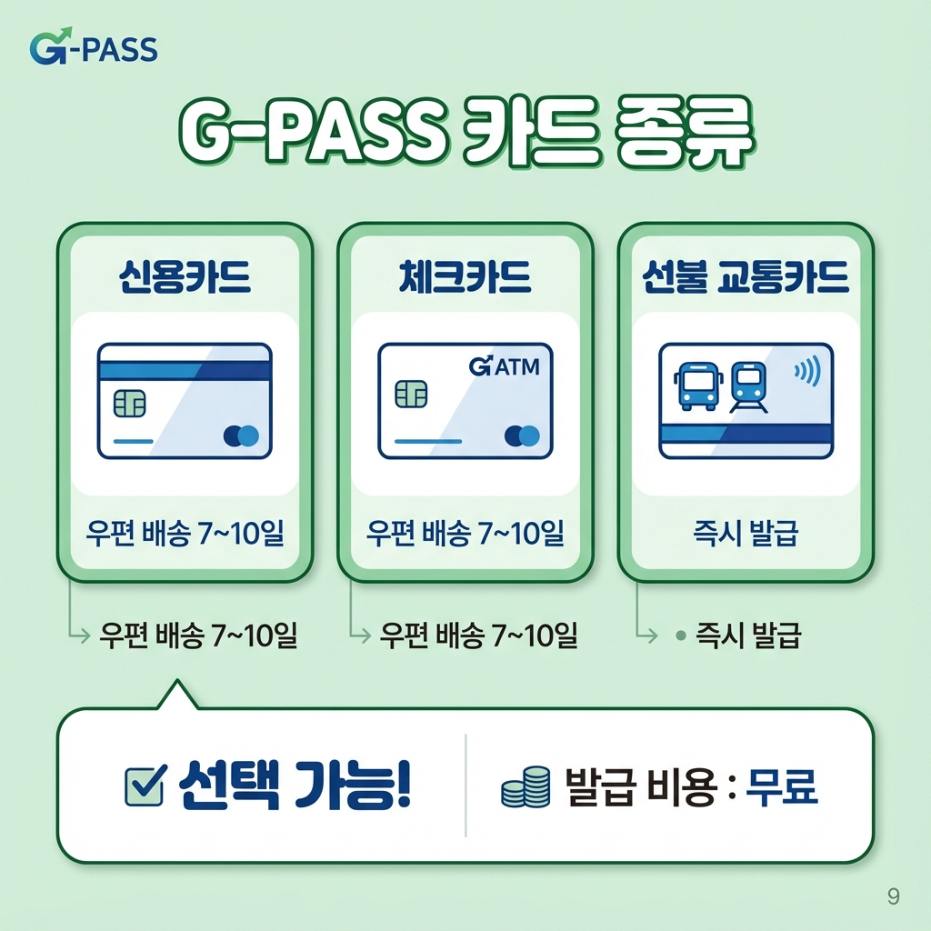 ④ 카드 수령: 신용/체크카드는 우편 배송(7~10일), 선불카드는 즉시 발급됩니다.