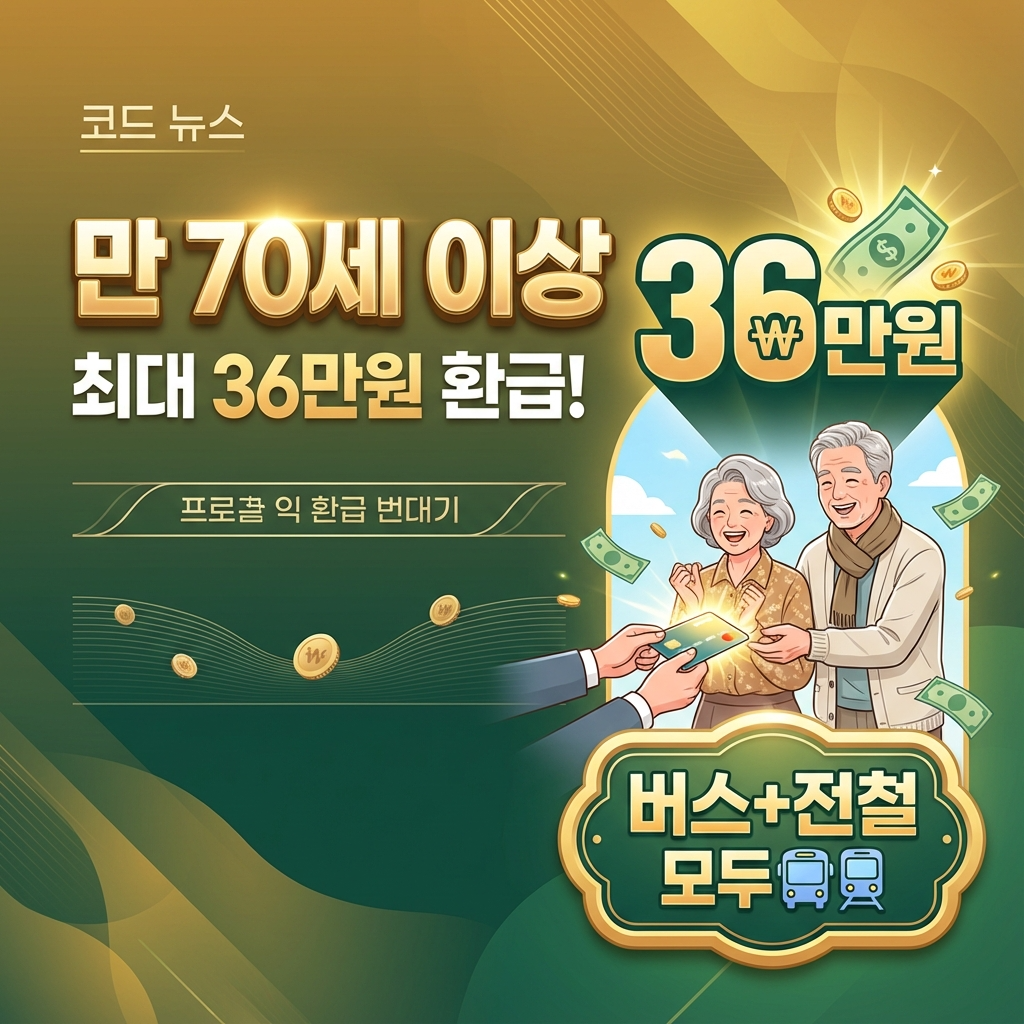- 어르신 교통비 환급: 만 70세 이상 일부 지역 - 버스비 연 최대 36만원 환급