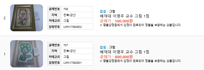 ✅ 미술품 및 기타 물품: 중견 작가의 미술품, 도자기, 골프채 등 총 835점
