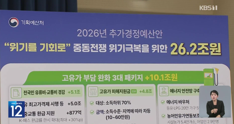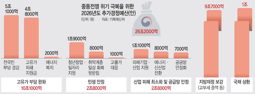 최근 중동 전쟁의 장기화 조짐으로 인해 주유소 휘발유와 경유 가격이 리터당 2,000원에 육박하며 서민들의 물가 부담이 극에 달하고 있습니다. 이에 정부는 총 26조 2,000억 원 규모의 추가경정예산안을 전격 의결하며, 민생 안정을 위한 고유가 지원금 카드를 꺼내 들었습니다.