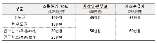 - 수도권 혜택: 1인당 10만 원 ~ 최대 55만 원