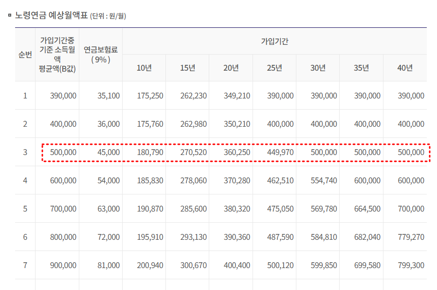 예를 들어, 월급 400만원을 기준일때 국민연금 수령액은 다음과 같습니다.