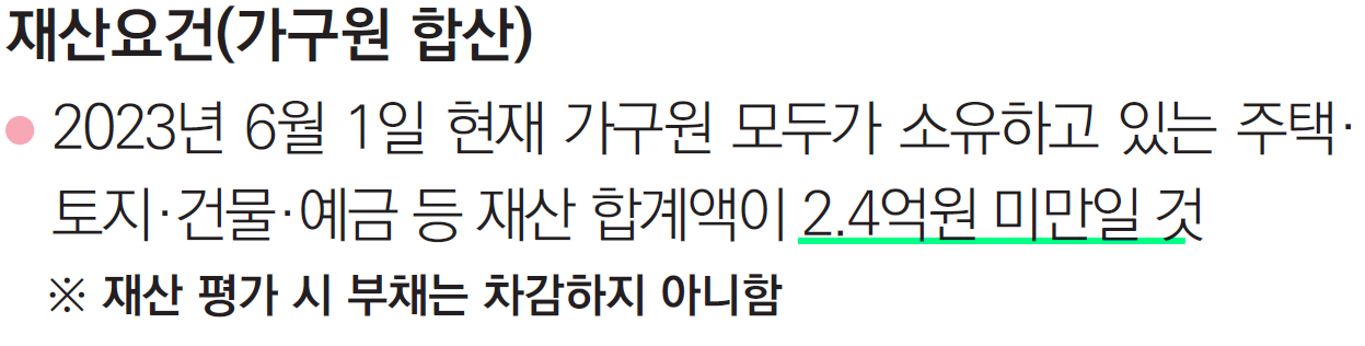 - 재산합계액 금액 : 2억 4천만 원 미만