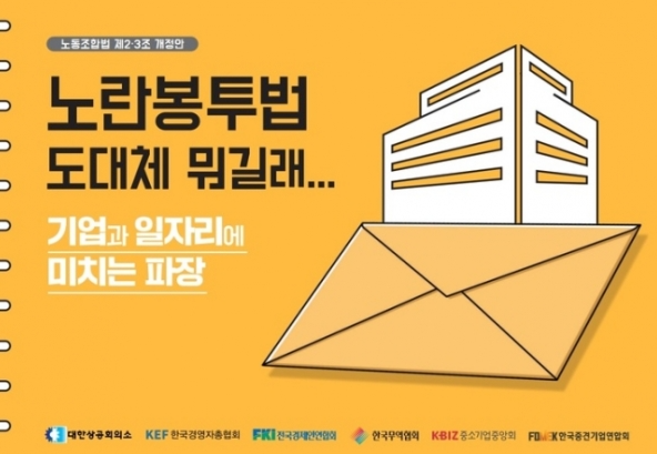 경총, 중소기업중앙회 등 경제 6개 단체는 민주당 환경노동위원회 위원들에게 노조법 개정안의 문제점을 공식 제기하며 국회 설득에 나서고 있습니다. 재계는 노란봉투법이 기업 경영을 위협하고 위헌 소지도 있다고 반대하고 있습니다.
