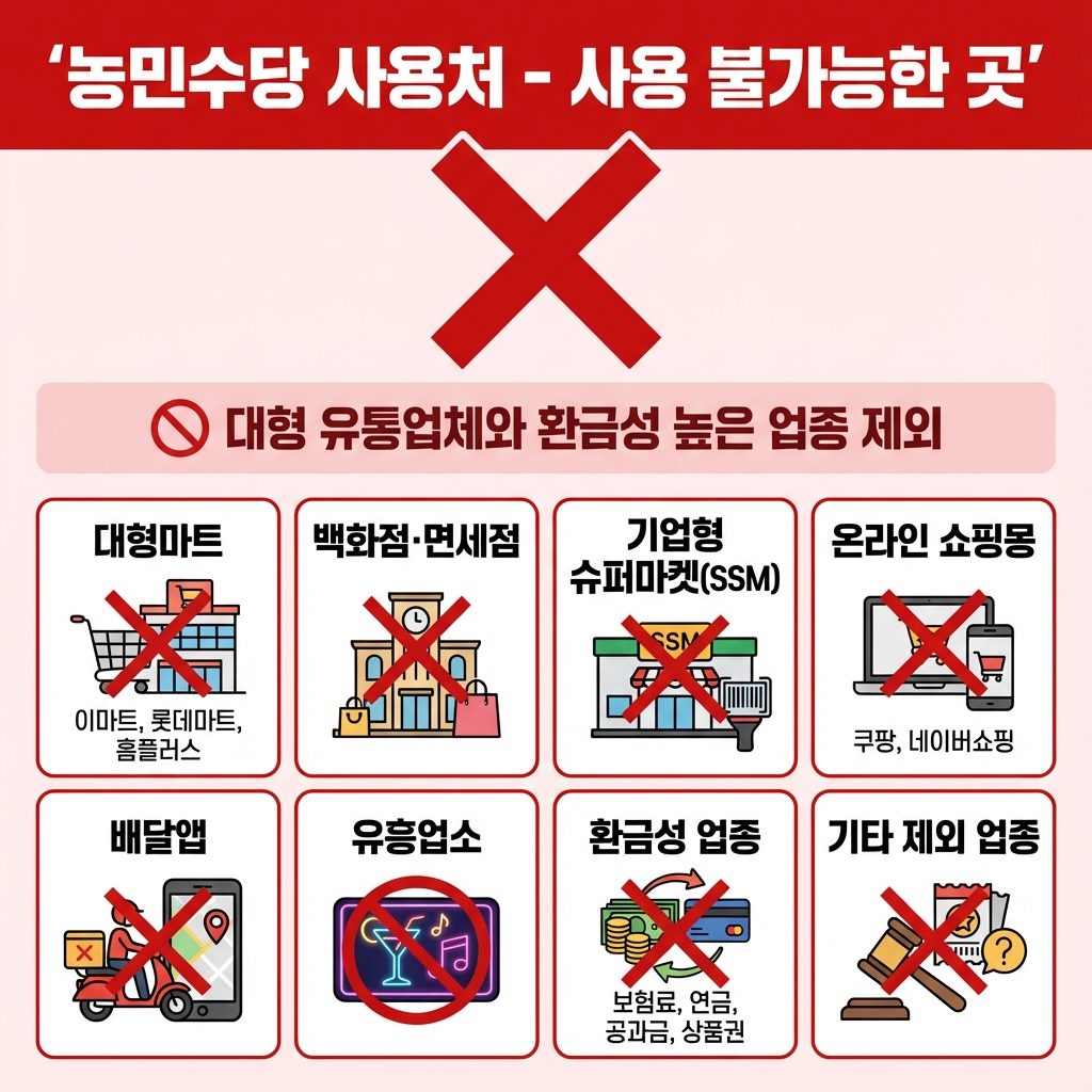 ❌ 농민수당 사용처 - 사용 불가능한 곳