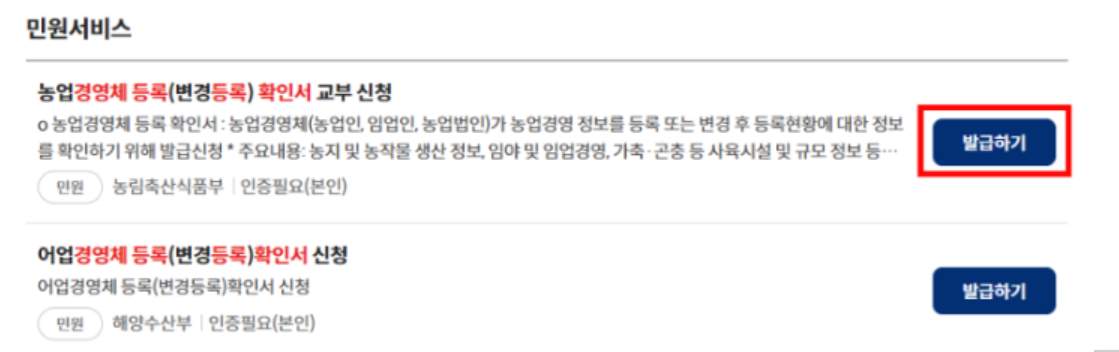 농업경영체등록 확인서 발급방법