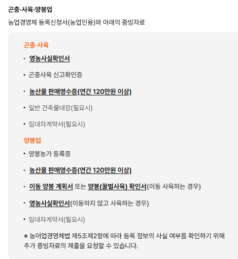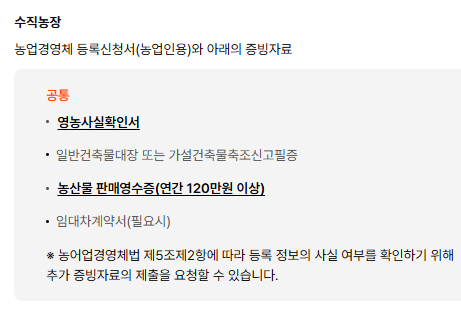 1. 면적이 작아도 가능? 유형별 농업경영체 등록조건