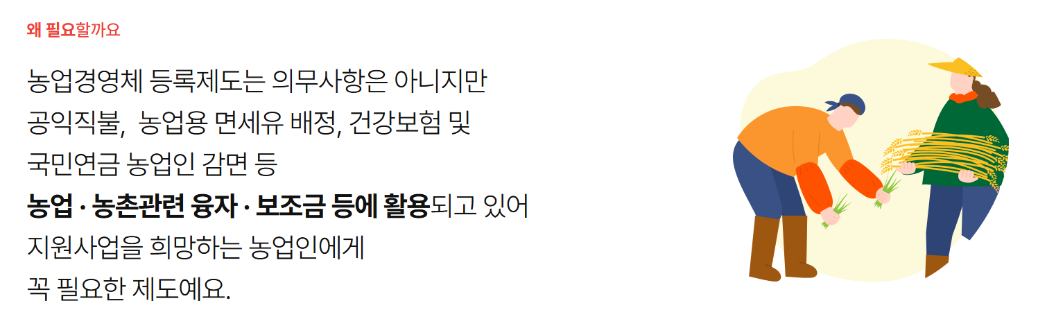 농업경영체 등록은 단순한 신고 절차가 아닙니다. 면세유 혜택, 각종 직불금 수령, 농자재 지원, 건보료 및 연금 감면 등 정부가 농업인에게 제공하는 거의 모든 혜택의 기준점이 되기 때문입니다. 즉, 농업경영체 등록조건을 충족하지 못하면 실질적인 농업인으로서의 권리를 누릴 수 없다는 뜻입니다.
