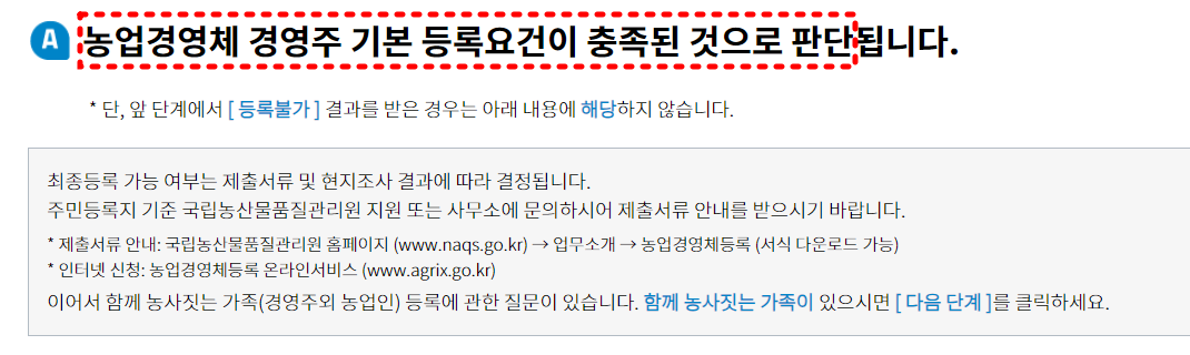 농업경영체 등록가능여부 확인방법