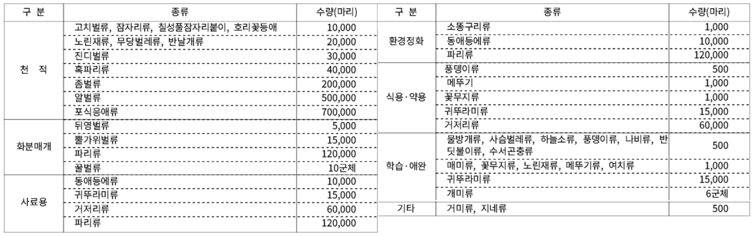 곤충 사육업을 운영하기 위해서는 사육 규모와 관계없이 곤충산업법에 따라 신고 확인증을 받아야 합니다. 예를 들어, 양봉업의 경우 330㎡ 이상의 농지에서 30군 이상의 벌을 사육해야 합니다.