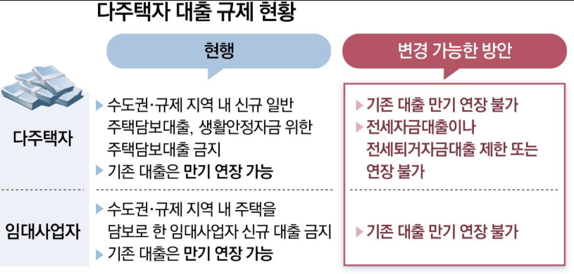 다주택자와 임대사업자가 보유한 주택 담보 여신의 기한이 돌아왔을 때, 더 이상 기간을 늘려주지 않고 원금을 즉각 회수하겠다는 강력한 조치입니다.
