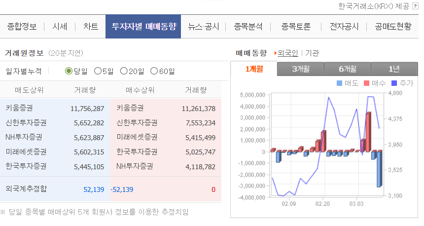 외국인과 기관의 실시간 매동 정보가 궁금하시다면 아래에서 바로 조회해 보세요.