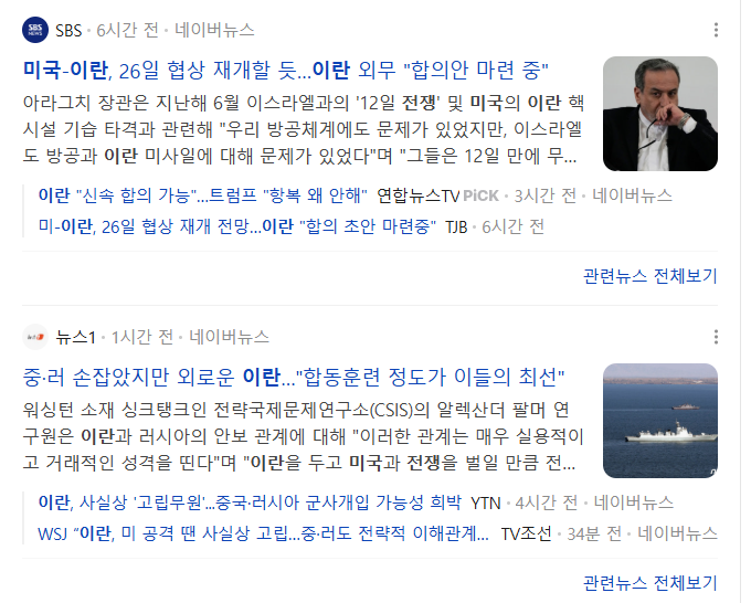 - 핵 협상 결렬 위기: 핵 프로그램을 둘러싼 협상이 지지부진하자, 미국은 중동 지역에 항공모함 전단을 추가 배치하며 군사적 압박 수위를 높이고 있습니다.