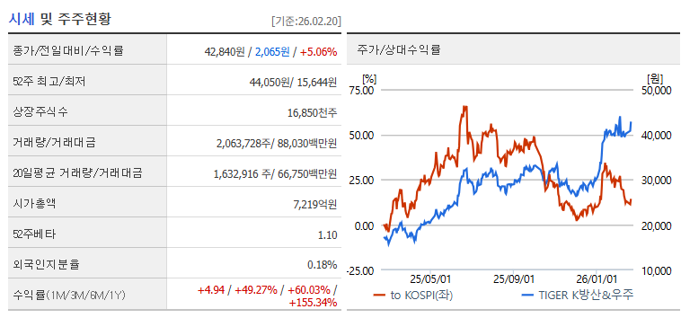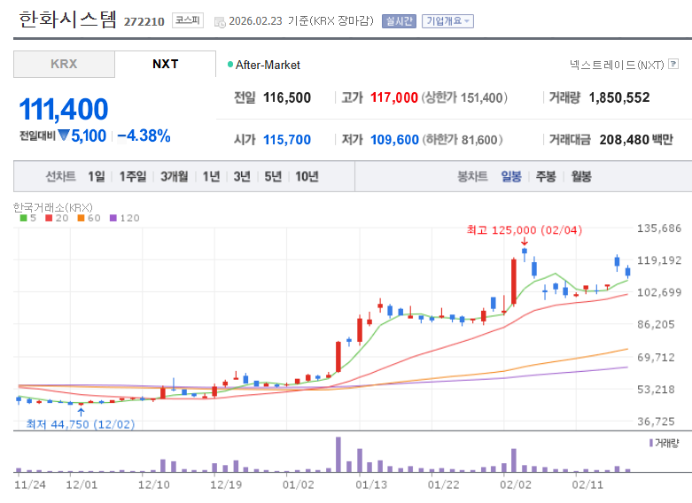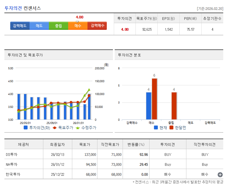 - 주가 전망: 2026년 2월 기준 증권가 목표가는 13만 7,000원까지 상향되었습니다. 방산뿐만 아니라 우주 위성 사업까지 궤도에 오르며 실적 퀀텀 점프가 예상됩니다.