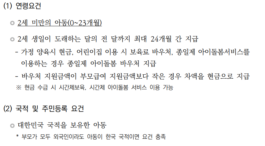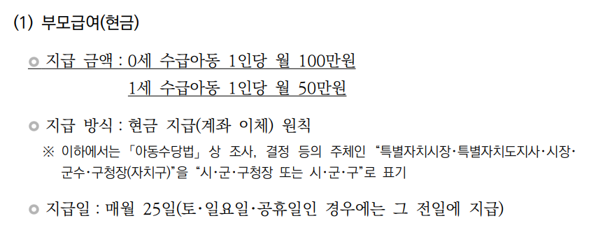 예를 들어, 만 0세 아동에게는 월 100만 원, 만 1세 아동에게는 월 50만 원이 지급됩니다.
