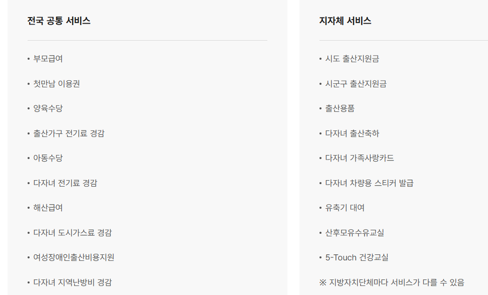 아동의 출생신고시 행복출산원스톱서비스를 신청하는 경우 시도의 출산지원금, 첫만남이용권, 양육수당, 부모급여, 아동수당, 전기료경감 등 전국의 공통서비스부터 지자체서비스를 한번에 신청할 수 있습니다.