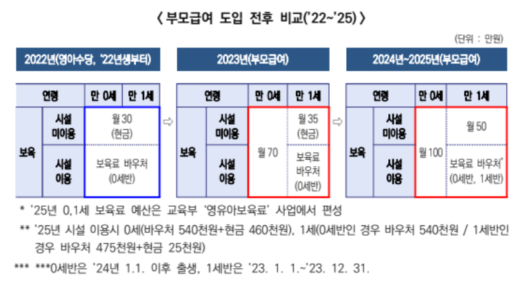 - 만 2세(24개월)부터는 부모급여 지급 종료