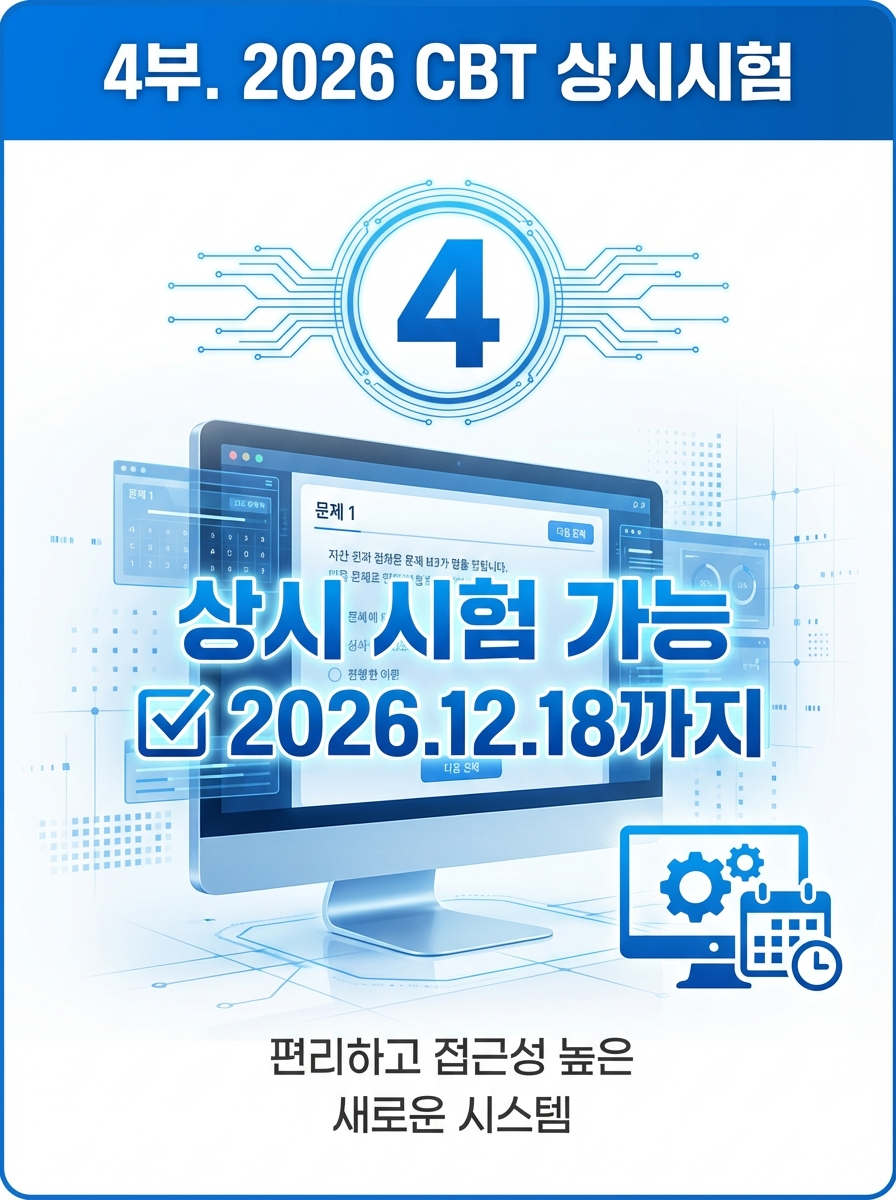 - 시험 방식: CBT (컴퓨터 기반 시험)