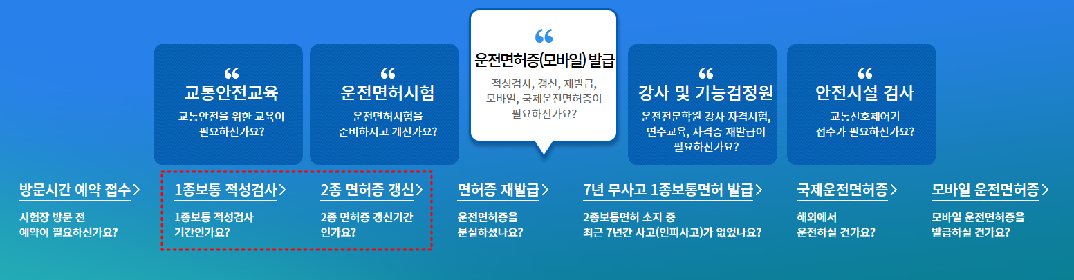운전면허증 갱신 준비물 적성검사를 모두 준비했다면, 아래 방법 중 하나를 선택하여 갱신을 진행할 수 있습니다.
