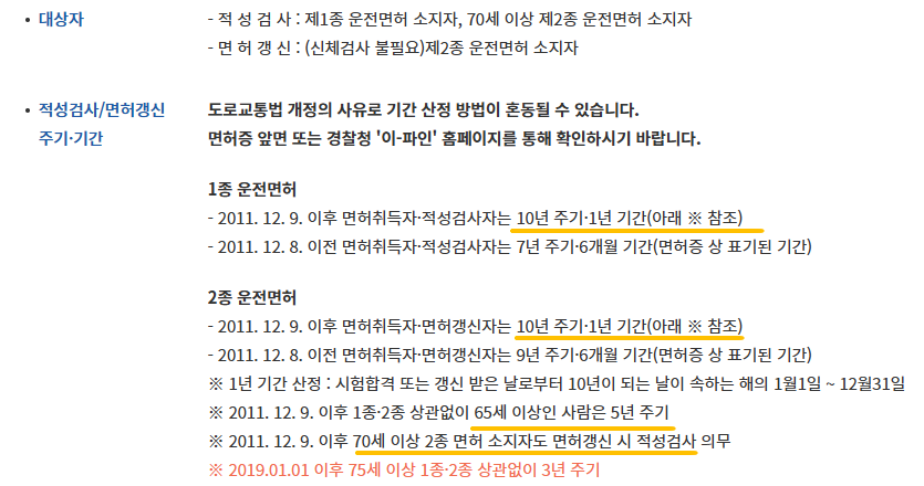 - 2종 면허 : 10년 (65세 이상은 5년)