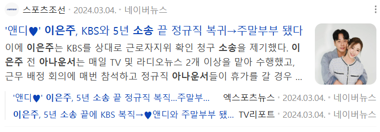 놀랍게도 2024년 1월, 대법원은 이은주 아나운서의 손을 들어주며 최종 KBS 승소 판결을 내렸습니다. 대법원이 프리랜서 아나운서의 근로자성을 인정한 것은 매우 이례적이고 역사적인 판결이었습니다. 이 KBS 승소 판결로 그녀는 당당히 복직할 수 있었습니다.