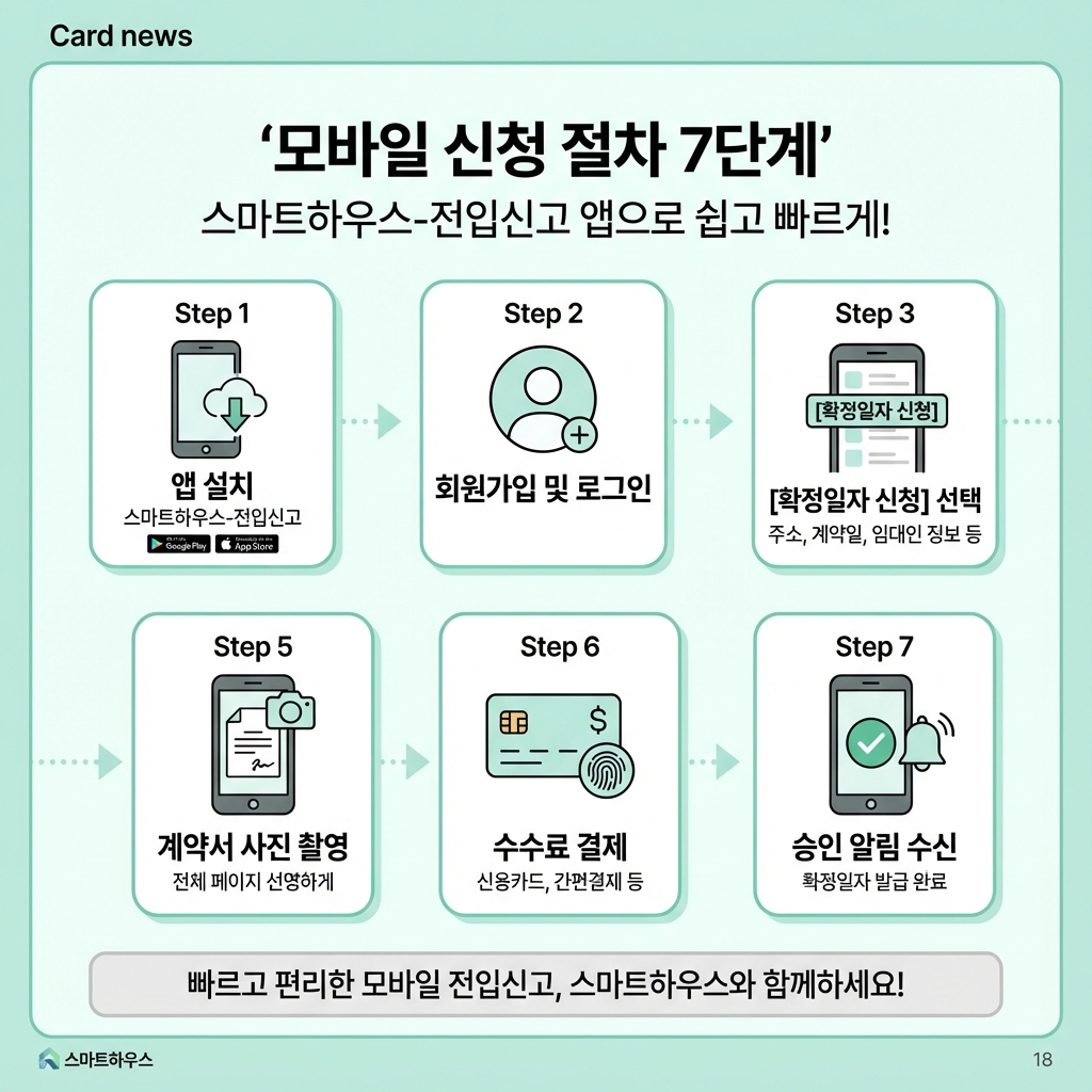 스마트폰으로도 인터넷 확정일자 받는법을 이용할 수 있습니다. '스마트하우스-전입신고' 앱을 사용하면 됩니다.