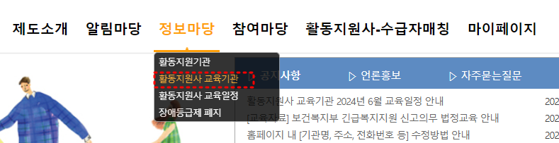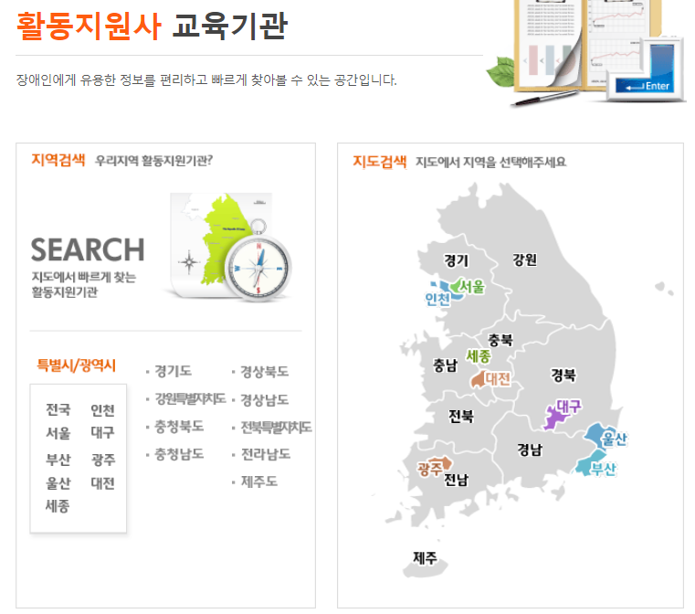 장애인 활동지원사 교육기관 지역별 검색 안내