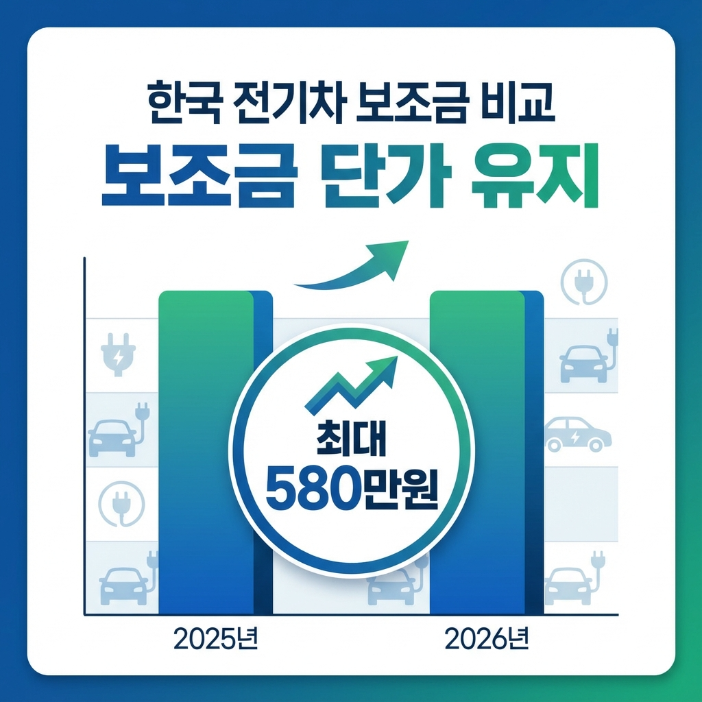 - 보조금 단가 유지: 매년 감소하던 추세를 멈추고 2025년 수준으로 유지 (중·대형 최대 580만원, 소형 최대 530만원)