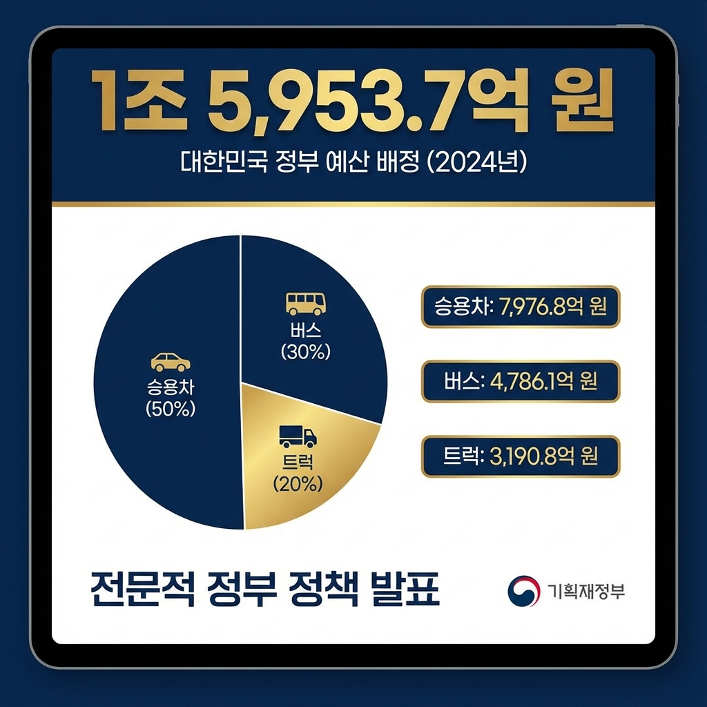 2026년 총 예산은 약 1조 5,953.7억 원으로 전기승용차 7,800억 원, 전기승합차 2,795억 원, 전기화물차 3,583.7억 원으로 구성되어 있습니다.