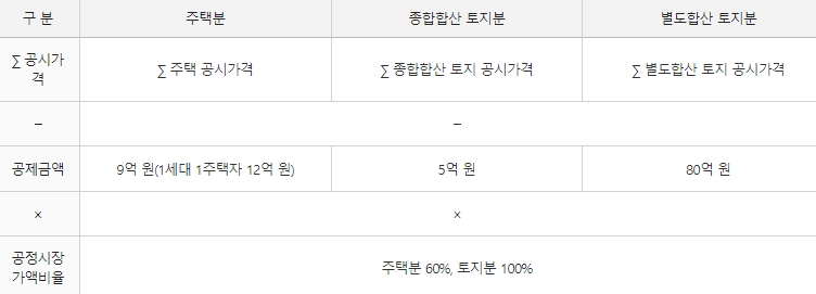 - 1가구 1 주택자의 경우 공시가격 12억 원 이상