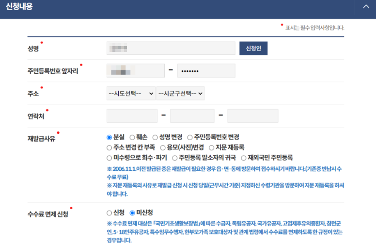 특정 사유에 해당하는 경우, 주민등록증 재발급 수수료가 면제될 수 있습니다.