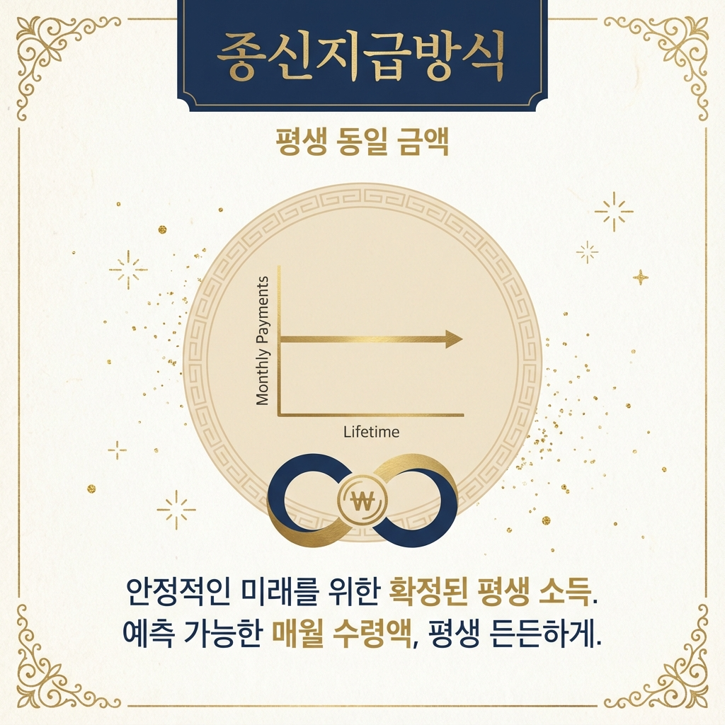 종신지급방식 평생 동안 매달 동일한 금액 수령 주택 가격과 연령에 따라 고정 월 수령액 계산