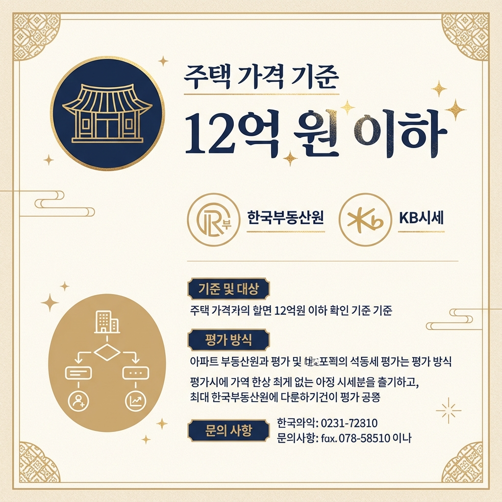 • 주택 가격: 공시가격 12억 원 이하의 주택이 대상입니다. 아파트의 경우 한국부동산원 시세와 KB 시세를 순차적으로 적용합니다.