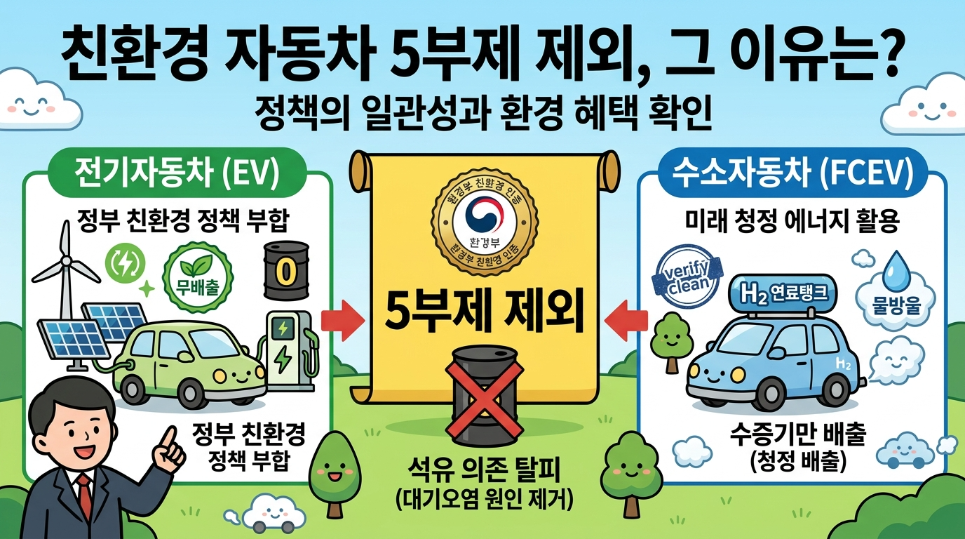 특히 차량5부제 제외차량 중 전기차와 수소차는 석유를 사용하지 않아 에너지 절약 취지와 무관하고, 정부의 친환경 자동차 전환 정책과 일관성을 유지하기 위해 차량 5부제란 정책에서 제외되었습니다.