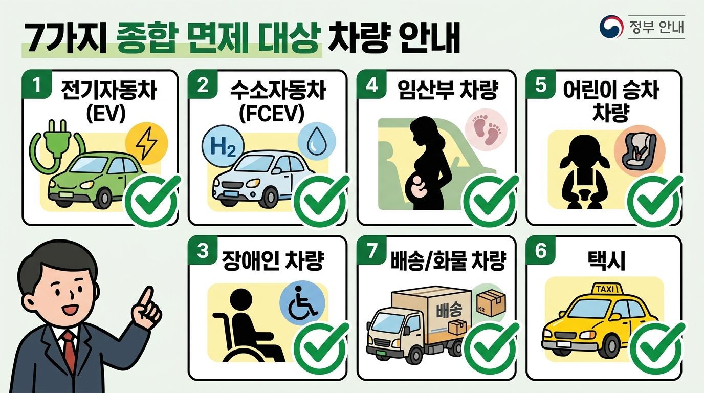 차량 5부제란 정책에는 명확한 예외 대상이 있습니다. 다음 차량5부제 제외차량은 차량 5부제란 적용에서 제외되어 제한 요일에도 자유롭게 운행할 수 있습니다.