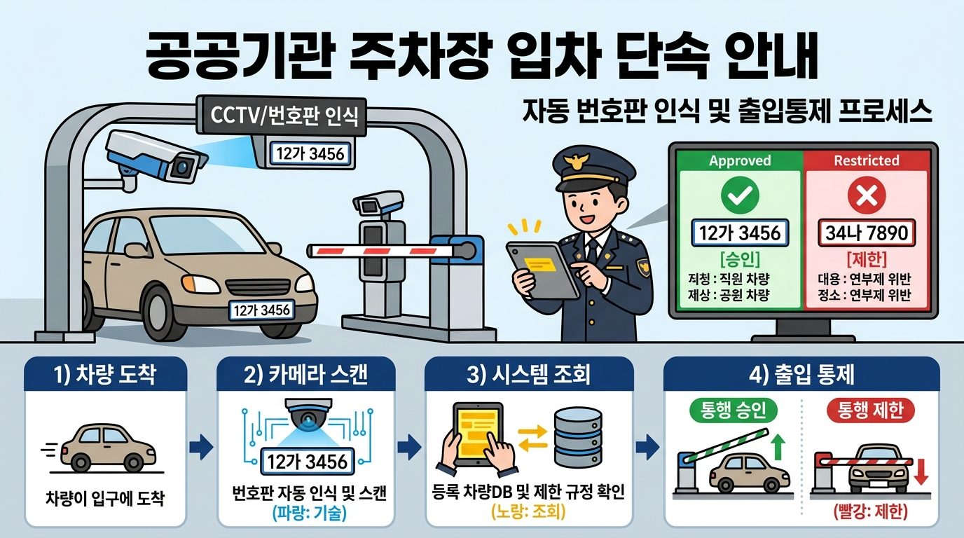 예를 들어, 차량5부제 번호가 서울12가3456이라면 끝자리가 6번이므로 매주 월요일 오전 6시부터 오후 9시까지 운행이 제한됩니다. 공공기관 주차장 진입이 차단되며, 상습 위반 시 기관장에게 통보됩니다.