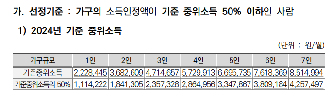 다시 말해, 기초생활수급자보다 조금 더 높은 소득인 중위소득 50% 이하의 가구 해당하지만, 경제적으로 취약한 계층입니다.