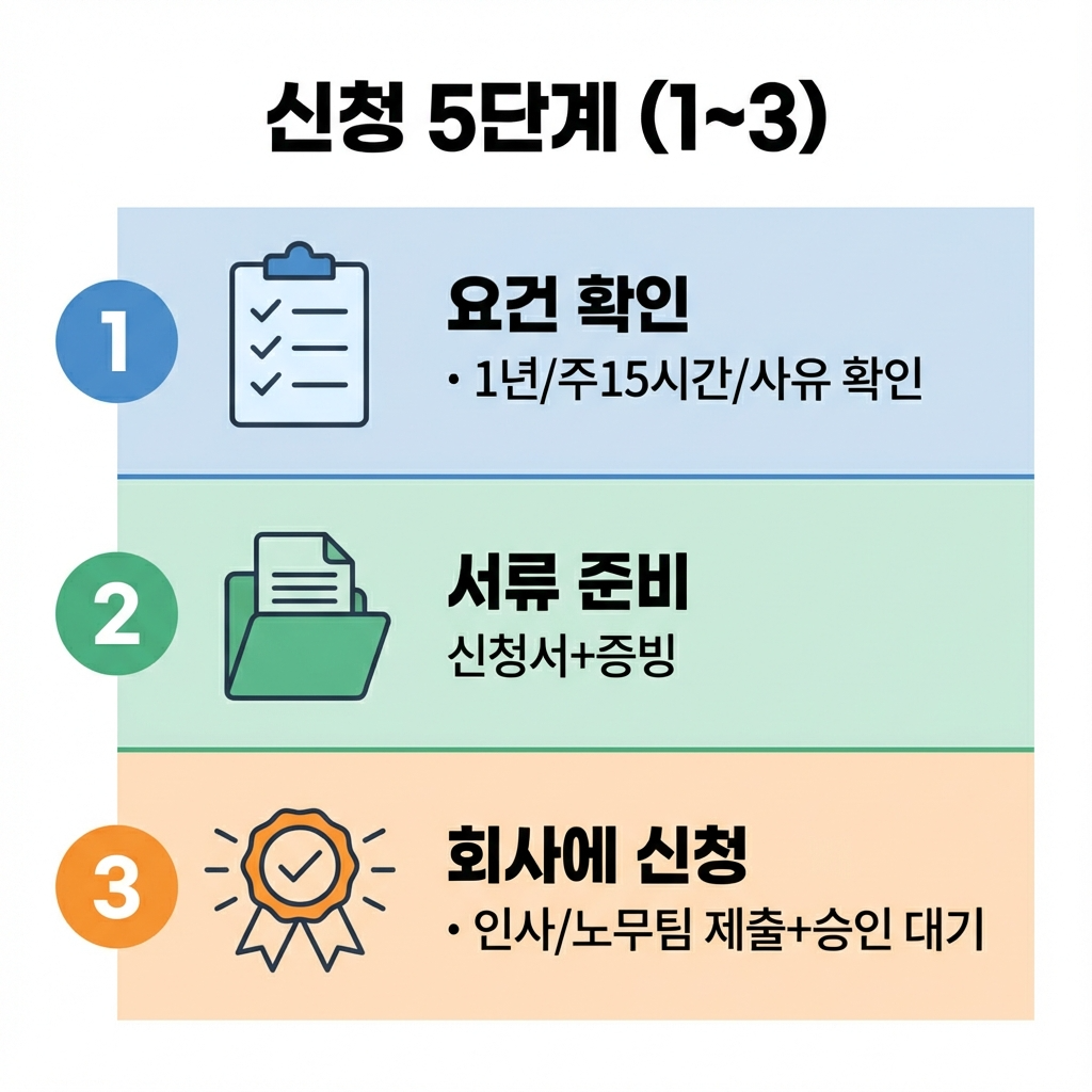 - 1년 이상 근무, 주 15시간 이상 근로 확인
