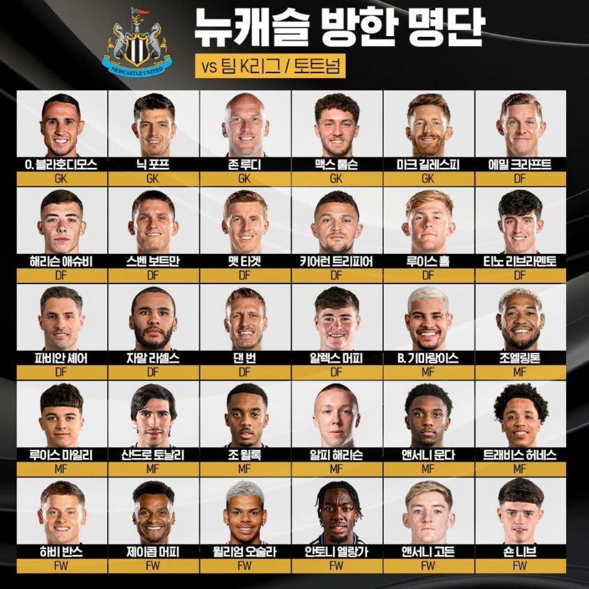 뉴캐슬의 공격력: 알렉산더 이사크의 부재는 아쉽지만, 앤서니 고든, 하비 반스 등 다른 공격 자원들의 활약이 기대됩니다. 특히 앤서니 고든의 빠른 속도와 드리블 능력이 팀 K리그 수비진에게 위협이 될 것입니다.