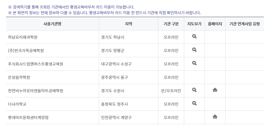 단, 평생교육바우처는 사용처로 등록된 곳에서만 이용할 수 있어 사용처 확인이 필수입니다.