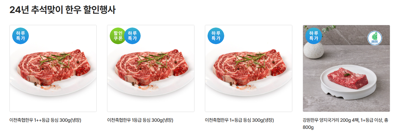 - 참여브랜드 : 강원한우, 장수한우, 의성마늘소, 홍천한우