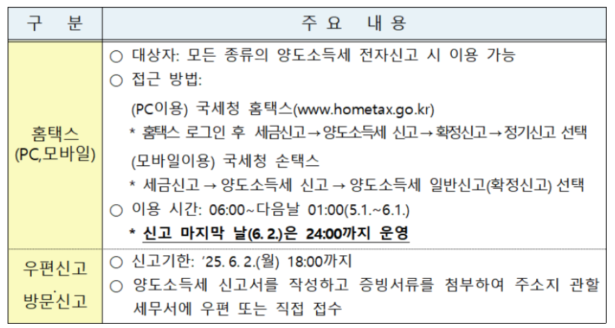 해외주식 양도소득세 신고방법은 국세청 홈택스를 통해 온라인으로 진행할 수 있습니다.