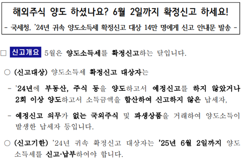 해외주식 양도소득세 신고방법 2025년 최신 정보