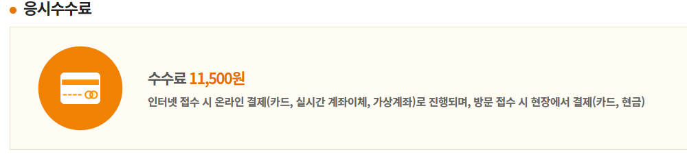 응시료는 11,500원이며, 합격 후에는 11,500원의 교육 수수료와 10,000원의 자격증 발급 수수료가 추가로 필요합니다.