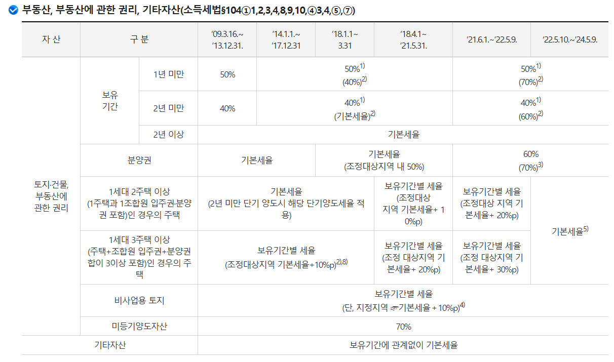 예를 들어, 일반 주택의 경우 양도차익에 대해 6%에서 45%의 세율이 적용됩니다.