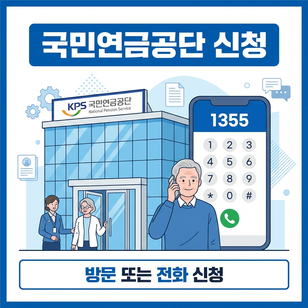 - 국민연금공단 방문/전화: 가까운 국민연금공단 지사를 방문하거나 콜센터(1355)로 전화하여 신청 가능합니다.