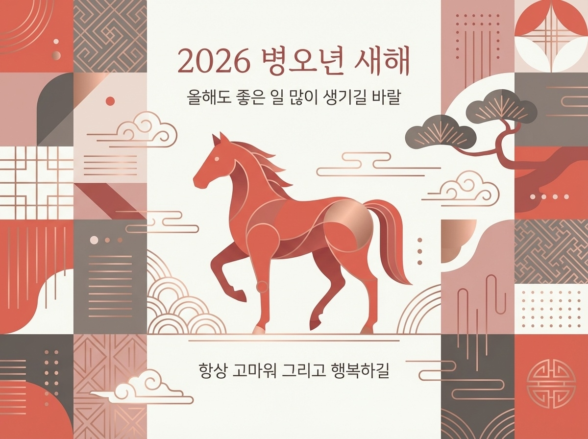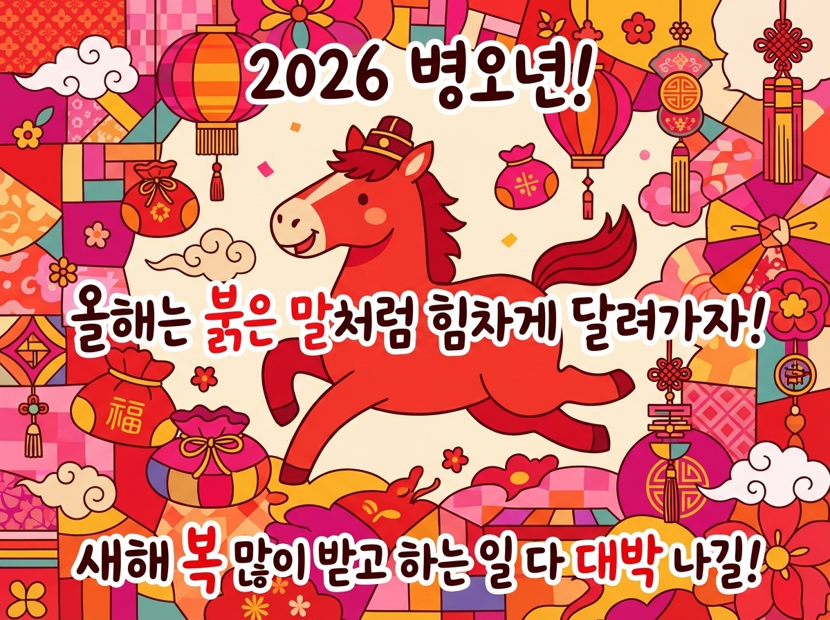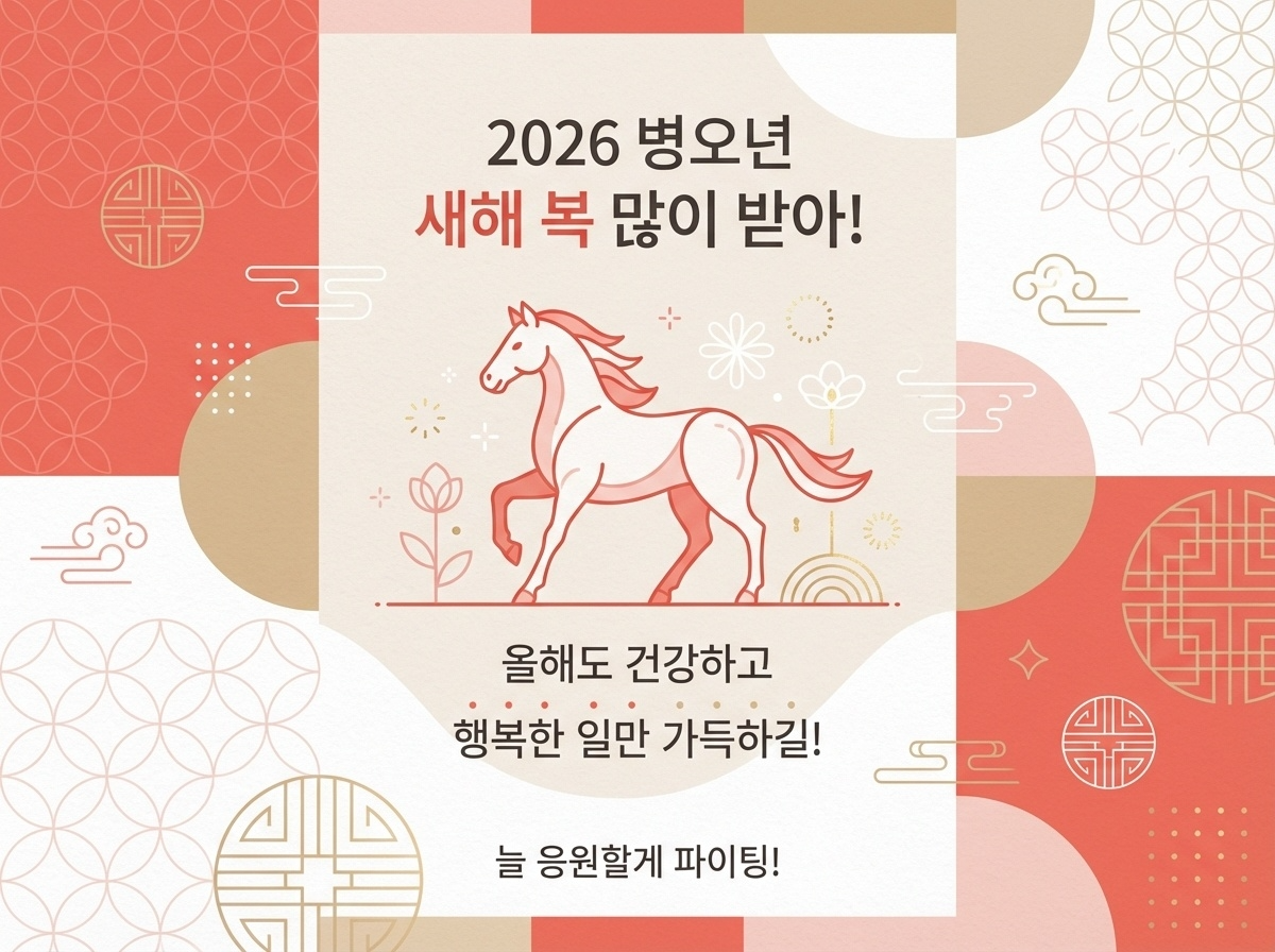 - 병오년의 힘찬 기운처럼, 2026년에는 하시는 일마다 대박 나시길 응원합니다. 항상 건강 유의하시고 새해 복 많이 받으십시오.