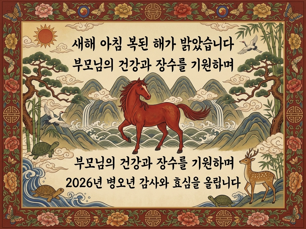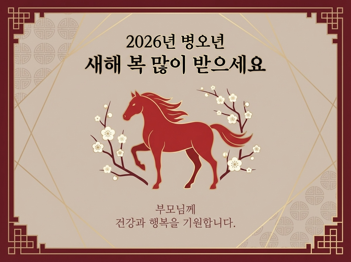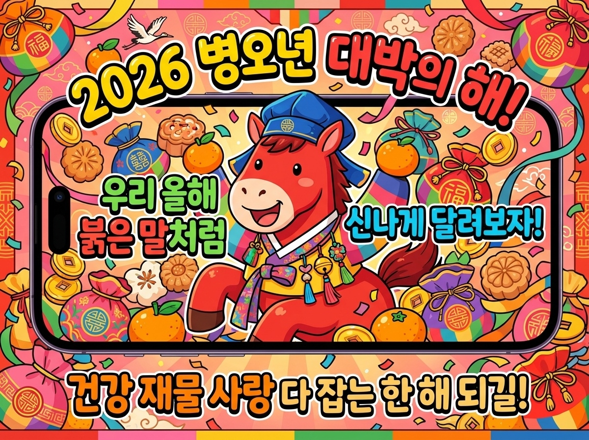 - 병오년의 힘찬 기운처럼, 2026년에는 하시는 일마다 대박 나시길 응원합니다. 항상 건강 유의하시고 새해 복 많이 받으십시오.