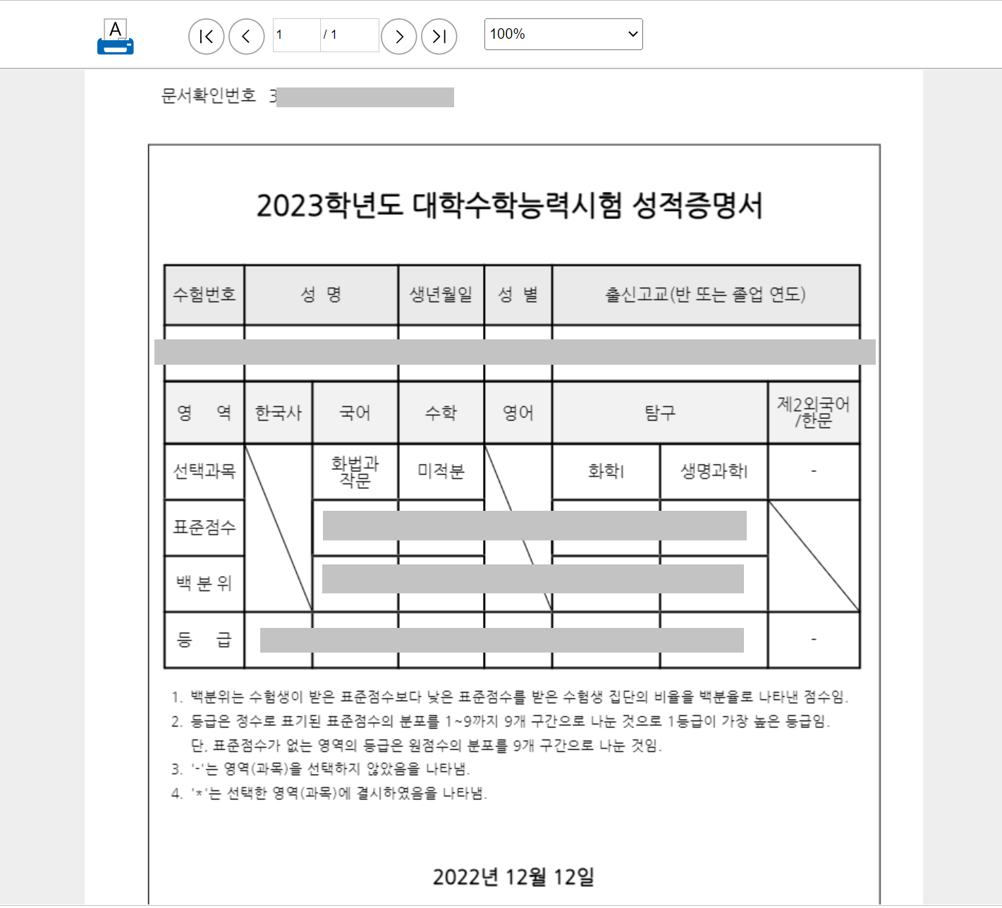 - 개인정보 보호: 성적표에는 민감한 개인정보가 포함되어 있으므로, SNS 등에 무분별하게 공유하지 않도록 주의하세요.