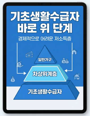 차상위계층은 기초생활수급자 바로 위 단계에 해당하는 저소득층을 의미합니다. 쉽게 말해, 기초생활수급자 기준에는 못 미치지만 경제적으로 어려운 상황에 처한 가구를 지칭합니다. 차상위계층은 소득이 낮아 생활이 빠듯하지만, 부양의무자나 재산 기준 때문에 기초수급자가 되지 못한 경우가 대부분입니다.